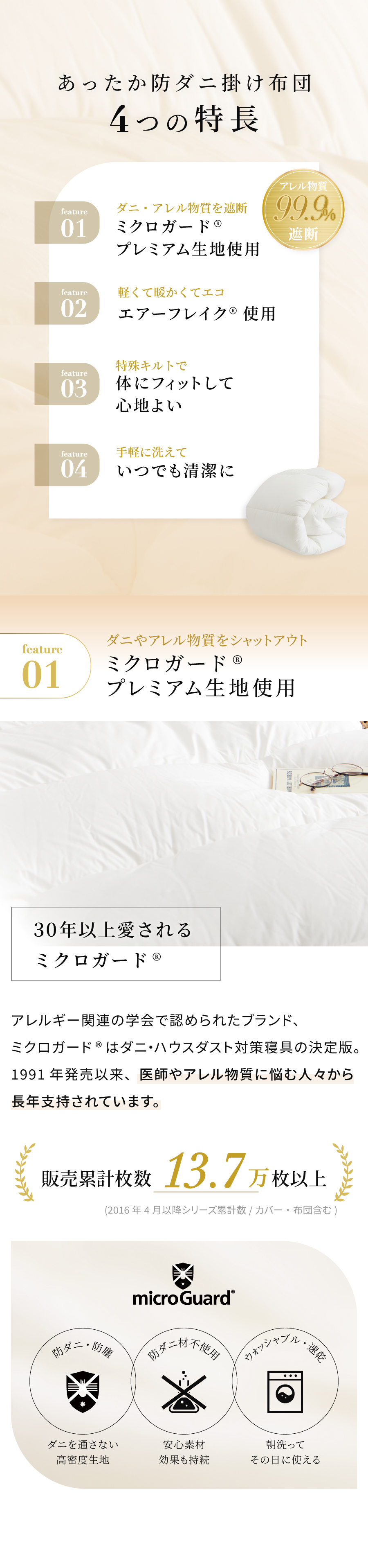 ミクロガードⓇ プレミアム 軽くて暖かい 防ダニ掛け布団