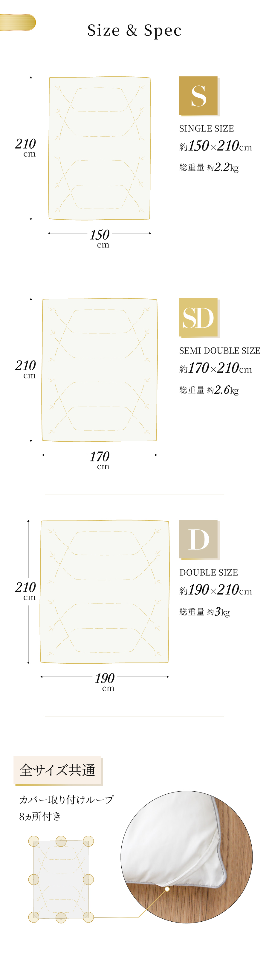 (セミダブル)約170cm×210cm
