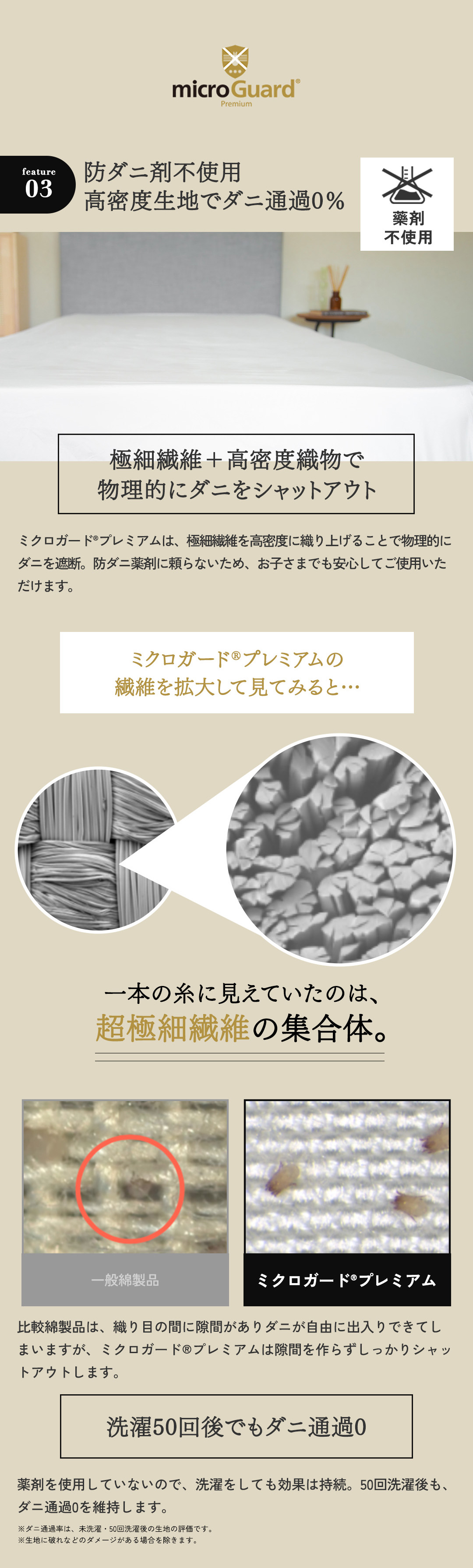ミクロガードⓇは、生地特性上、また梱包の段階で細かい皺が入る事がありますが、防ダニ機能には影響ございません。
