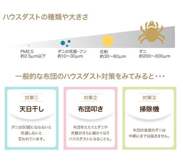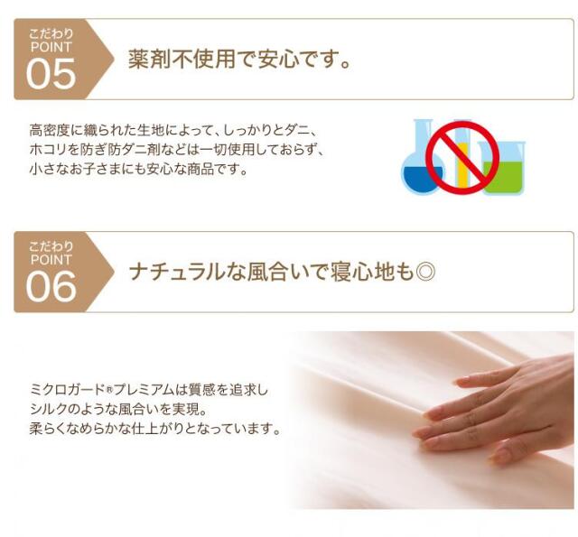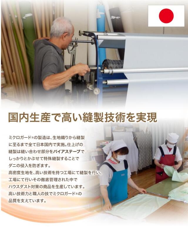 ミクロガードⓇは、生地特性上、また梱包の段階で細かい皺が入る事がありますが、防ダニ機能には影響ございません。